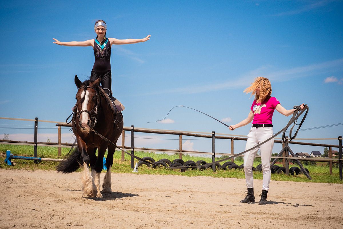 Jest to dyscyplina sportowa, w której zawodnicy faktycznie wykonują ćwiczenia gimnastyczne, akrobatyczne na poruszającym się na lonży koniu. Ćwiczenia mogą być indywidualne, w parach lub więcej osób tworzy figurę na grzbiecie konia. Na zawodach w eleganckich strojach uczestnicy prezentują program złożony z wielu figur i są oceniani przez komisję.